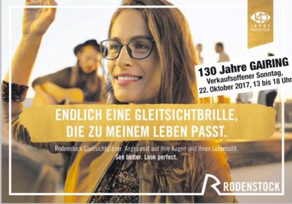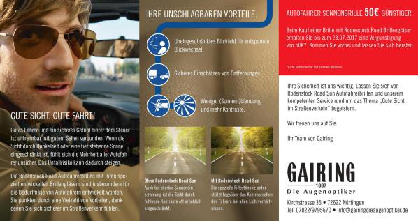 Beim Kauf einer Brille mit Rodenstock Road Brillengläser erhalten Sie bis zum 28.07.2017 eine Vergünstigung von 50€*. Kommen Sie vorbei und lassen Sie sich beraten.