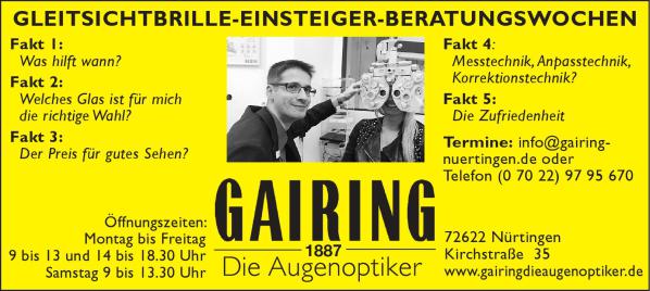 Dieses finden Sie bei Gairing Die Augenoptiker. In unserem Portfolio befinden sich viele namhafte Hersteller wie z.B. Swarovski, Zeiss, Minox, Eschenbach.